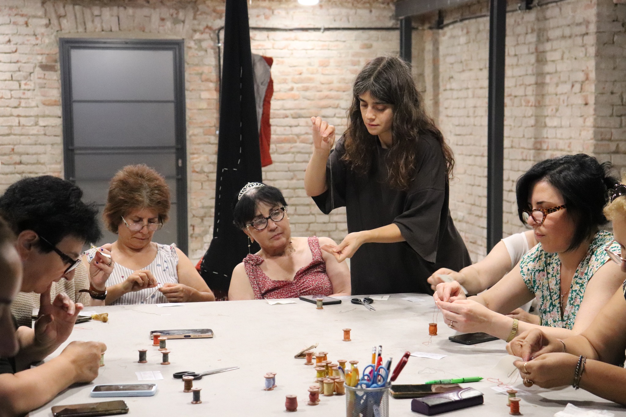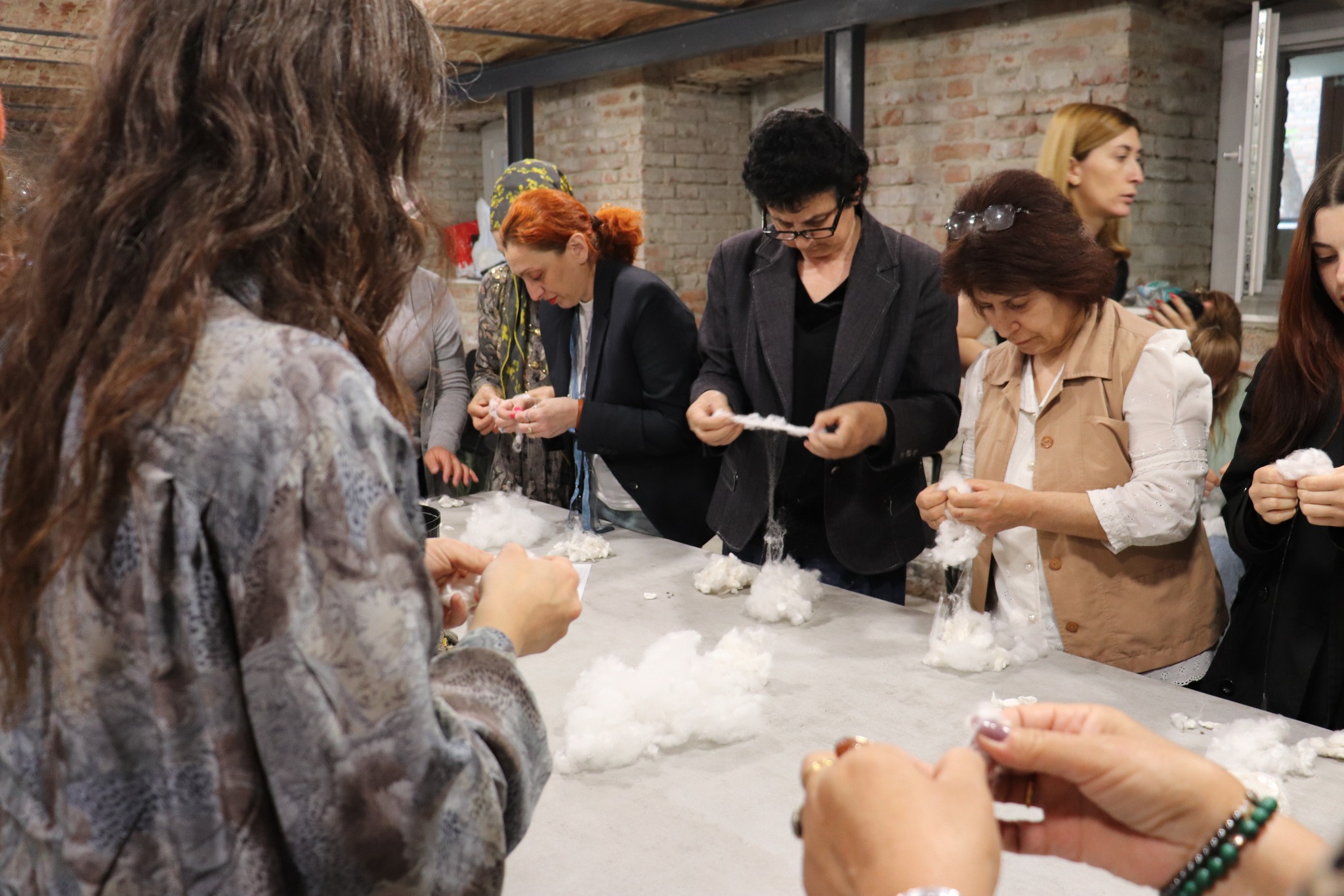 - ანა კაპანაძის ხელმძღვანელობით, მონაწილეებმა ძაფის დართვის ტექნიკა განამტკიცეს.